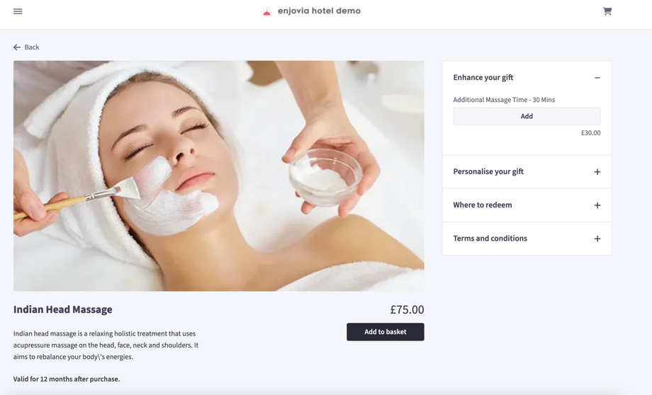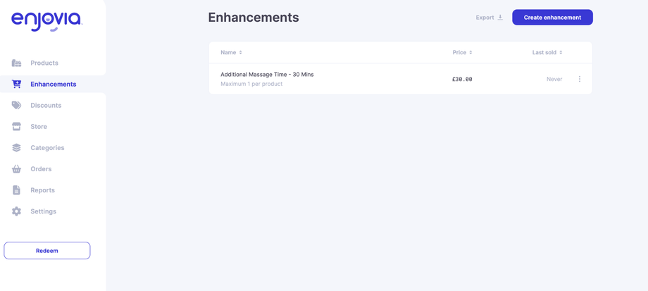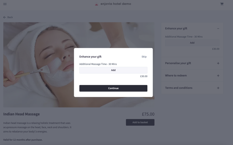The enjovia system provides sellers with the opportunity to sell additional 'enhancements' to products and services which they sell.
