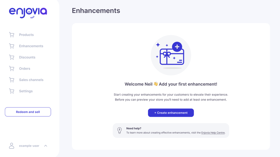 Enhancements can be added by clicking on enhancements on the side menu. When you make your first enhancement you will be met with the following screen: