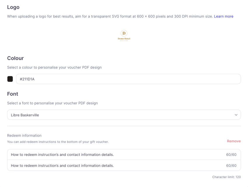 - Finally add your redeem instructions, this will be put across all PDFs.