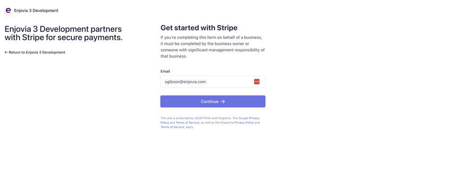 Firstly, head over to Stripe, or create a new account through pressing connect to stripe in Enjovia.
