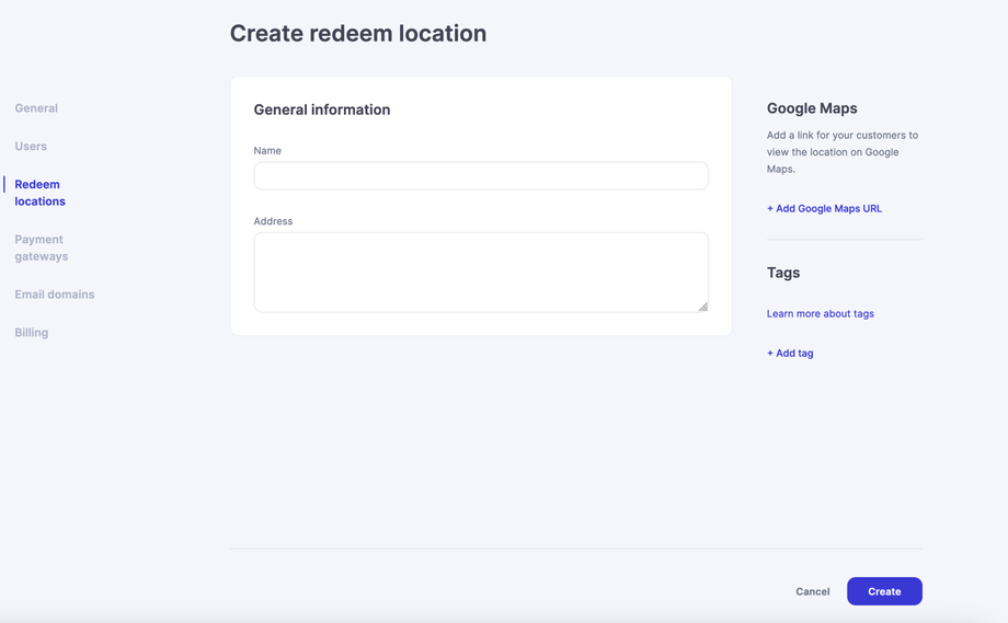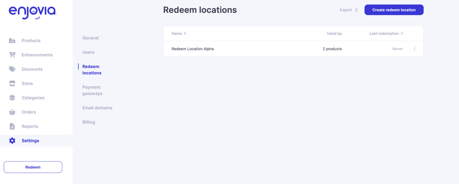 The first step is to set up a redeem location, you can set up a single location for a single business or multiple locations, if you are selling products which can be redeemed in multiple locations or across different brands.
