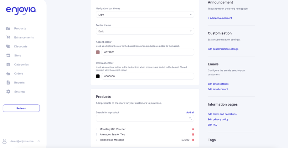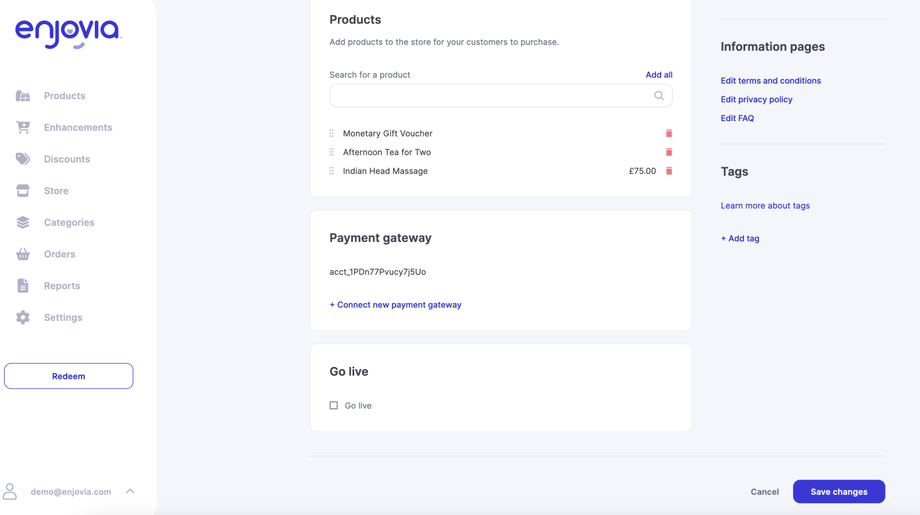 The final section is tags to set up specific tags for API connections on a store level. When you are happy with your store and settings, press save changes.