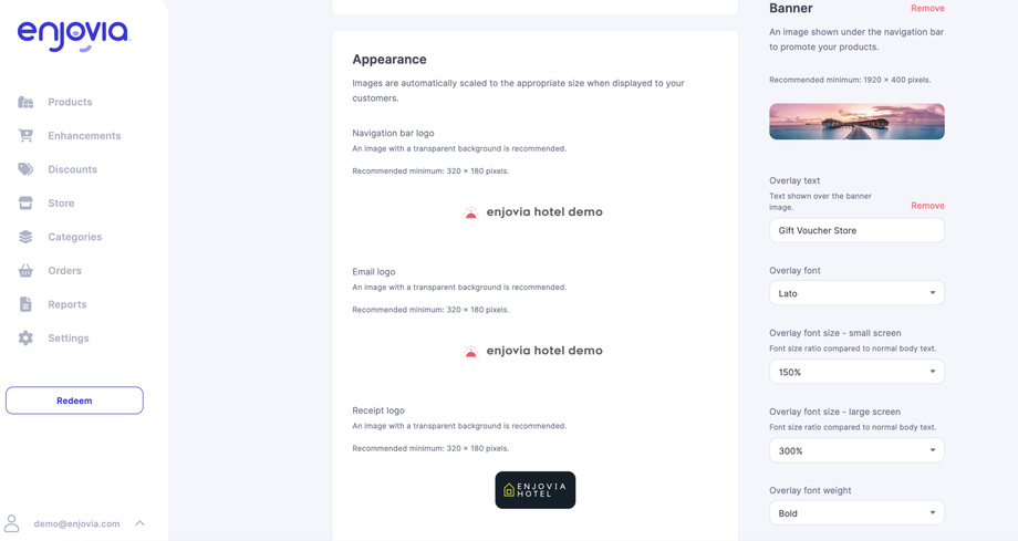 The second thing is to set the email logo, this is the email which will contain the customers gift, in almost all cases this would be the same as the store logo.
