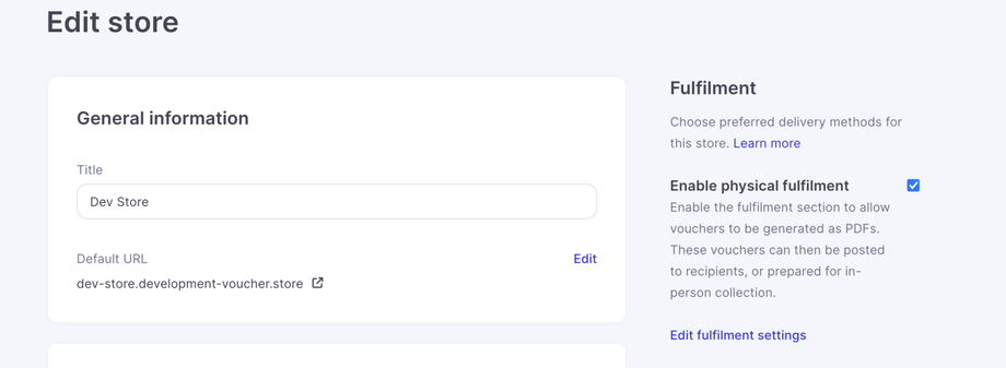 The next optional setting is fulfilment, this is a major setting, which enables vouchers to be generated as PDFs for postal and collectional orders. Please see our fulfilment help page here.