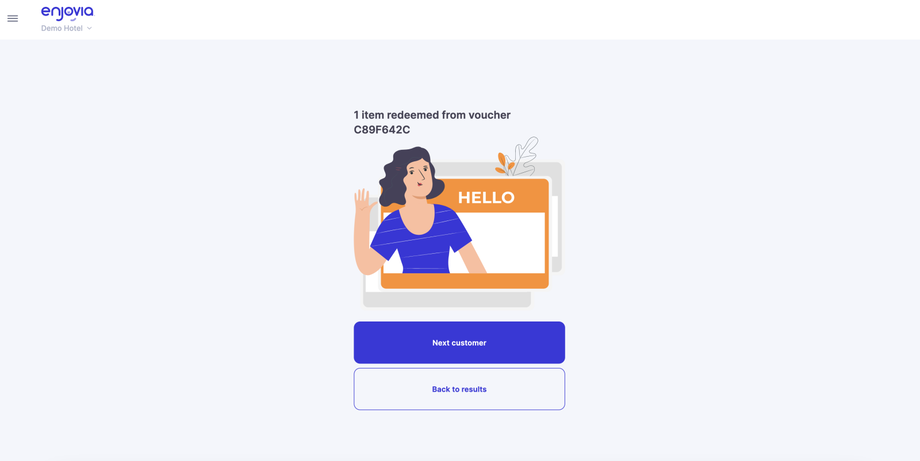 Click next customer to redeem your next voucher or click back to results to see the remaining balance.