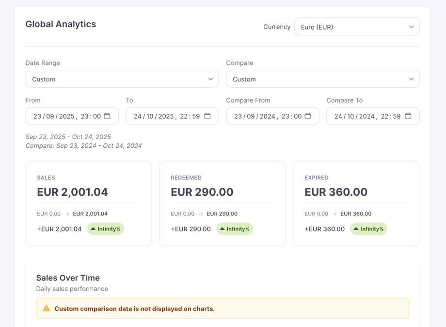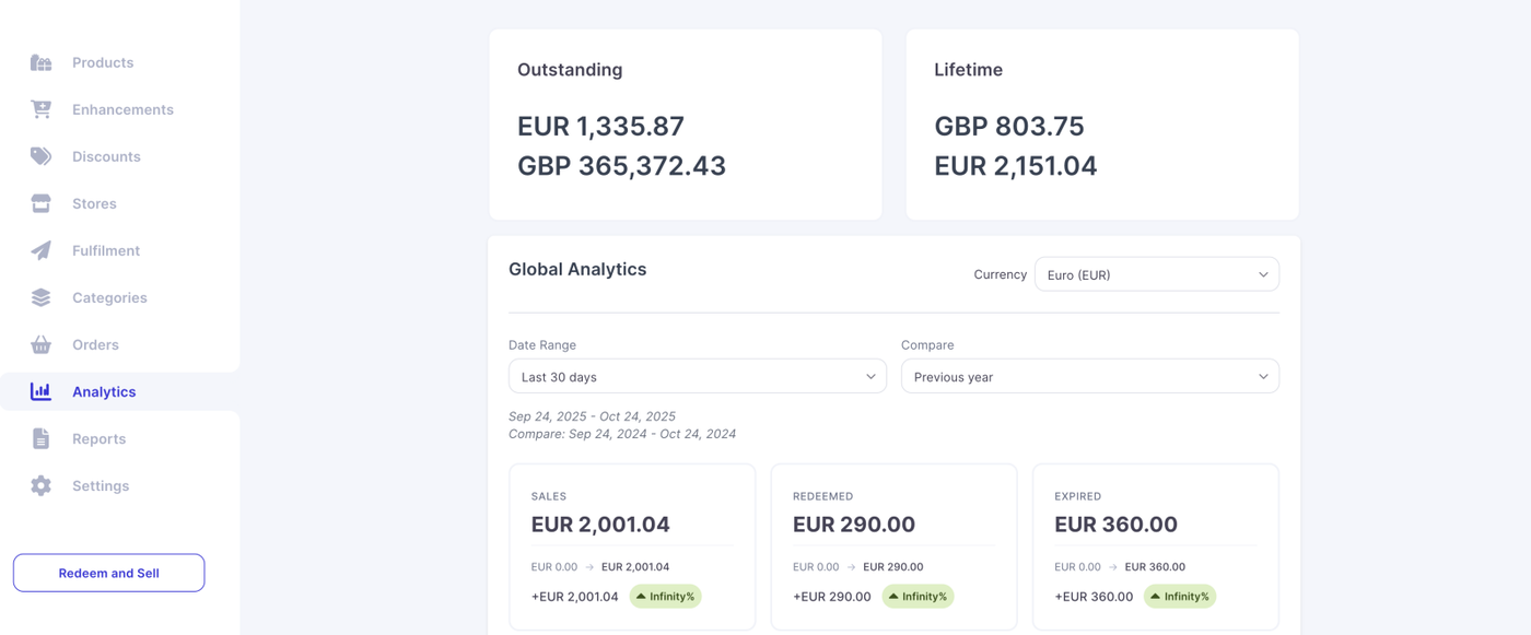 Total Sales, Redemptions & Expiries – Analyse overall performance within any selected period.