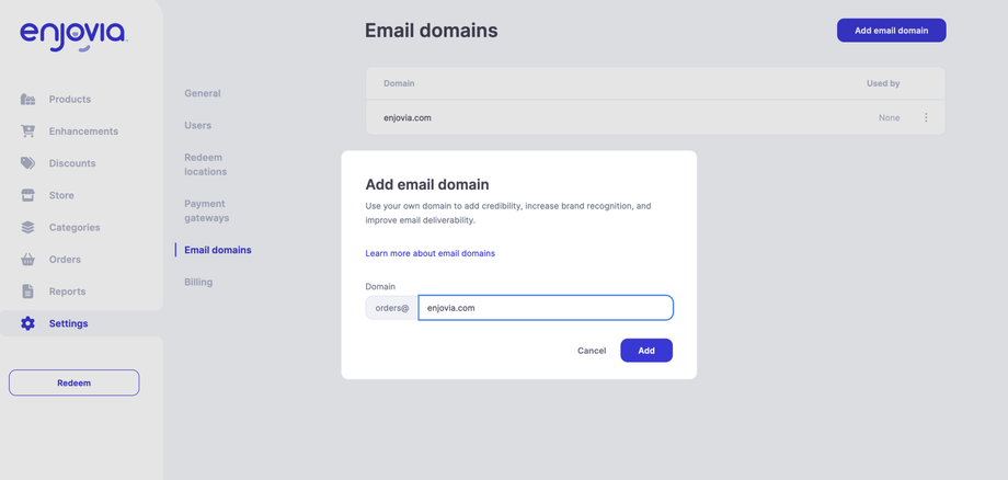 Enjovia allow you to change the domain the emails that get sent out to customers come from.