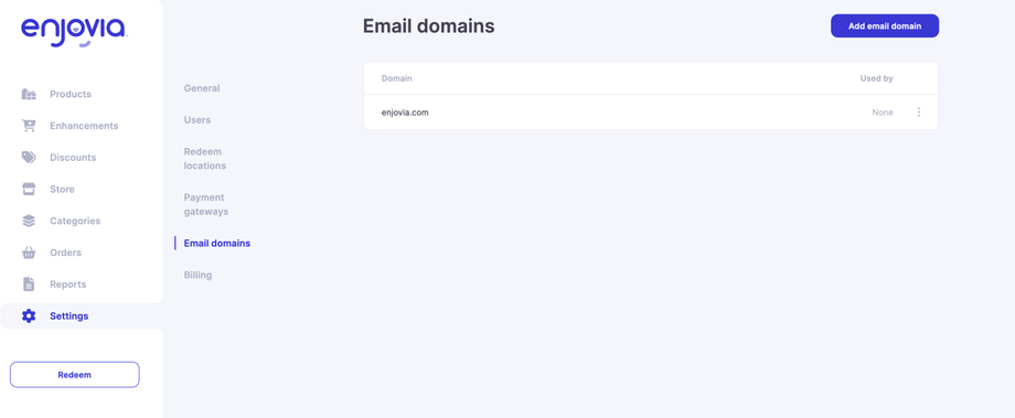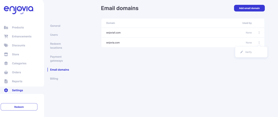 If you are a single business you will only need to do this once, if you are running multiple stores from one account, you can assign email domains to specific stores, so each location or brand can send out emails specific to each. Any created email domains will appear on this list.