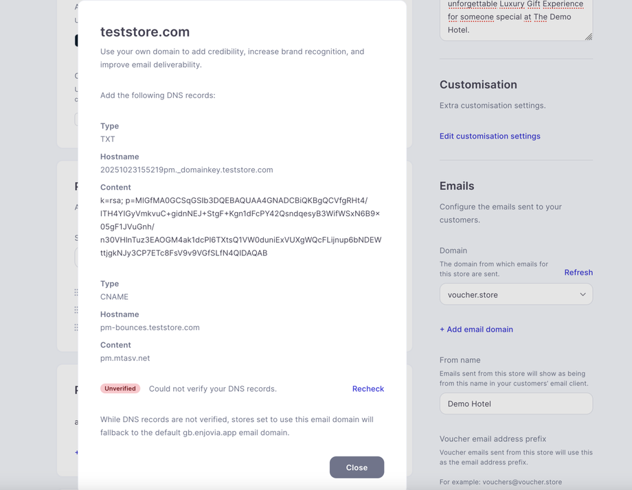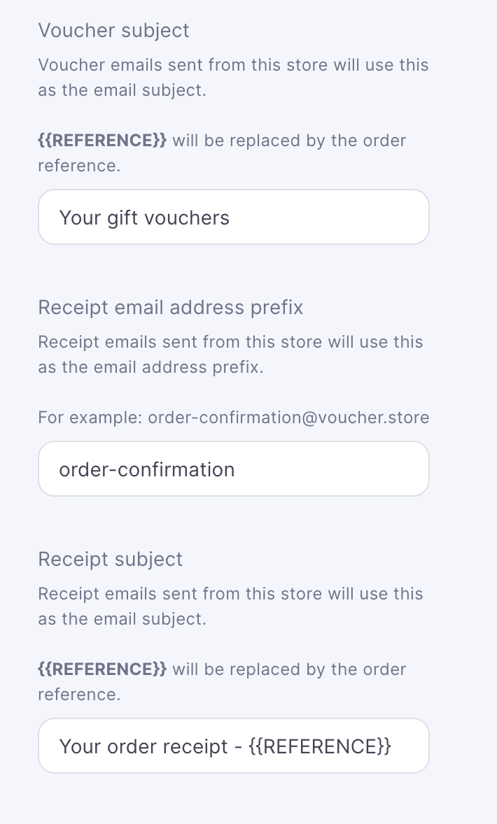 Voucher Email Prefix: The prefix used for your voucher emails.