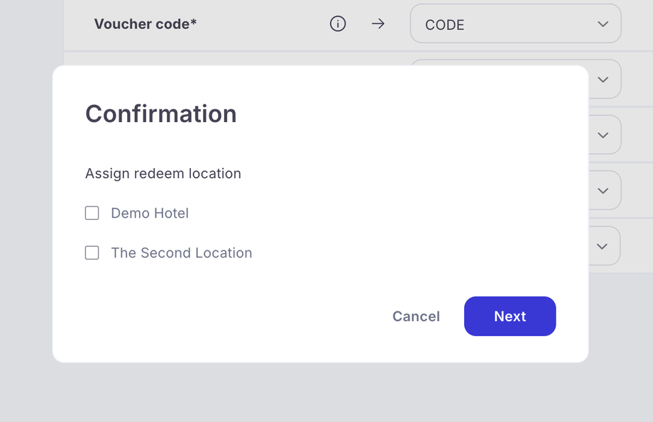 If your business has multiple redeem locations, you’ll first need to decide where each imported voucher can be redeemed. This can be: