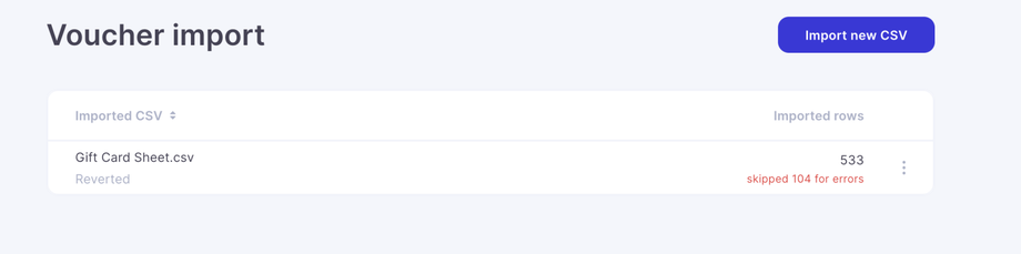 If you delete or revert an import, the system will treat it as if it never existed. This means that any actions previously taken on those imported vouchers (e.g., a voucher that had already been redeemed) will no longer be reflected in the system.
