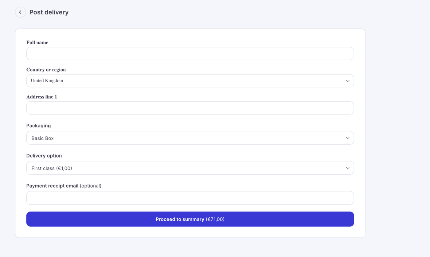 - Add a payment receipt email - this will send a payment confirmation receipt to this email, this is optional and can be a different email to the voucher.
