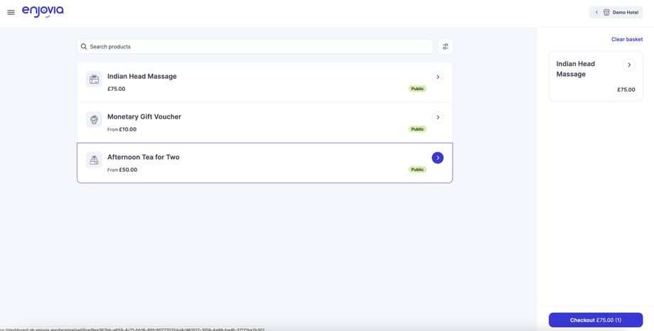 The Terminal has a sell a product feature which allows employees to sell or create vouchers directly from the admin dashboard.